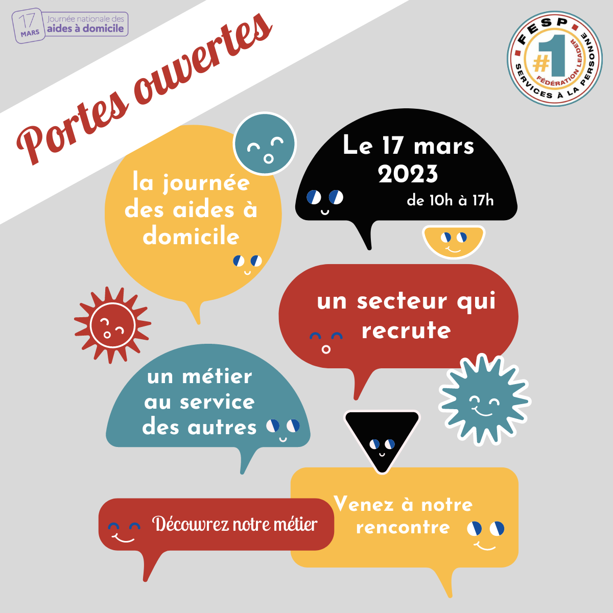 Pendant la journée nationale des aides à domicile la Fesp vous accompagne pour les portes ouvertes de votre établissement Pour cela nous mettons à disposition ce Kit média pour l'opération.